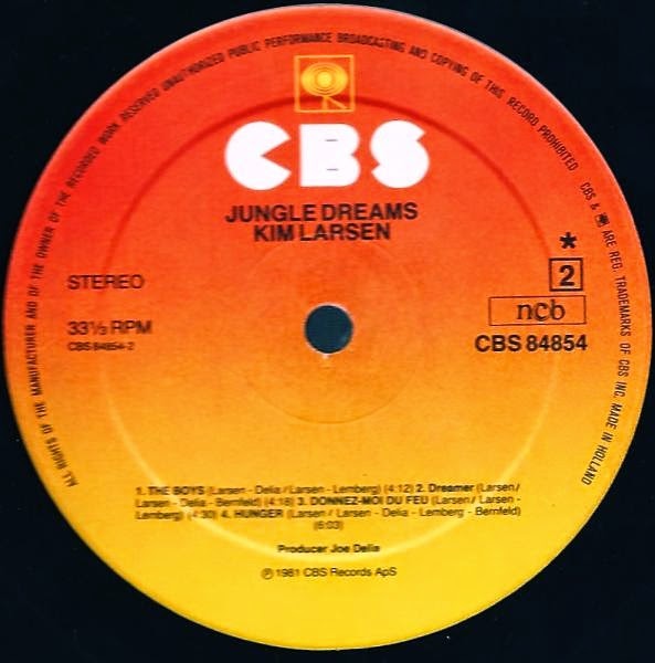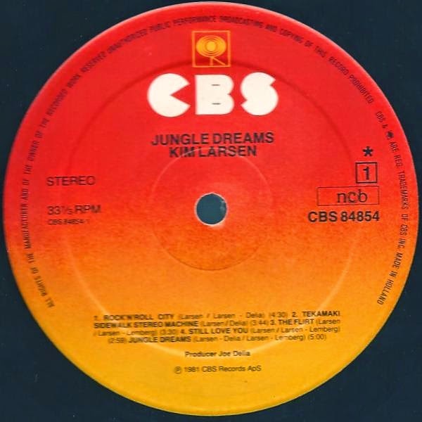 Kim Larsen (Kim Melius Flyvholm Larsen) classe 1945 è sicuramente uno tra i più popolari artisti danesi. Già molto attivo alla fine dei '60, precisamente nel 1969 fonda i Gasolin' assieme a Franz Beckerlee e Willi Jonsson (poi sostituito da Soren Berlev). Il loro rock molto influenzato da Jimi Hendrix è di buona fattura ma non riesce ad oltrepassare il confine nazionale. Nonostante tutto il gruppo continua la sua attività fino al 1978 anno in cui si scioglie. Finita questa avventura Kim Larsen intraprende una carriera solista che lo porta ad incidere alcuni album su CBS cantati in inglese con la speranza di sfondare anche all'estero ma il successo sembra non voler arrivare. Nel 1981 però esce questo "Jungle Dreams" e finalmente dopo tanti anni di attività il nostro Kim riesce a far parlare di sè. Abbandonate le chitarre quasi del tutto ci regala un disco di synth-pop molto divertente e scanzonato e brani come "Rock'n'Roll City" e "Tekamaki Sidewalk Stereo Machine" hanno un buon successo e vengono inseriti in qualsiasi scaletta wave-rock.