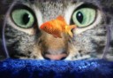 il gatto a cosa sta pensando?... Il pesce è già spaventato!!